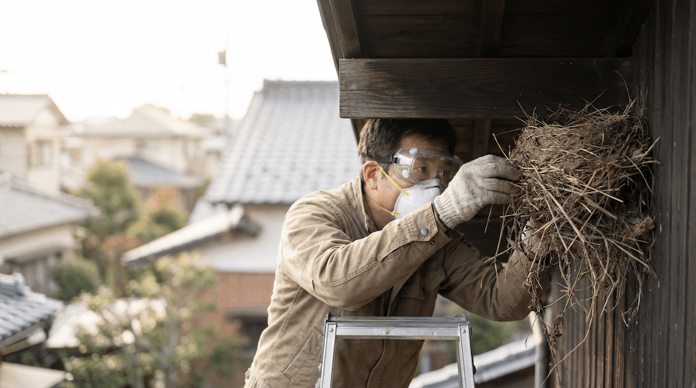 鳥の巣を安全に撤去する正しい手順|消毒から廃棄までの流れ