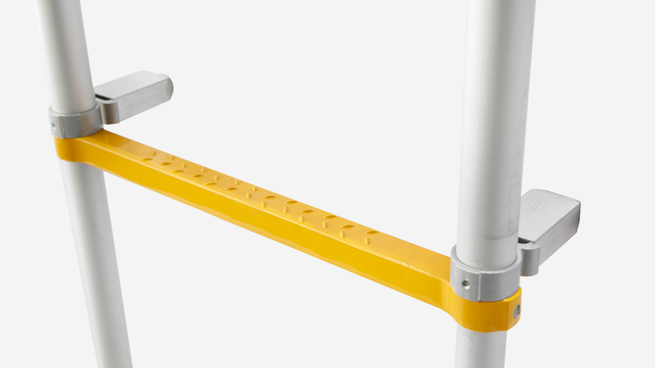 手掛棒、壁当て、アウトリガーが標準装備されたフル装備モデル。 横滑りや転倒のリスクを極限まで抑え、高所での長時間作業でも安心です。